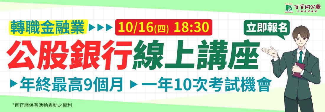 【銀行考試/金融基測】實體+線上講座|一年考超過10次!考取公股銀行,TKB百官網助你最短30天就上榜